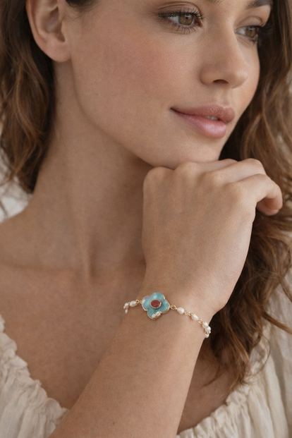 Bracelet AURA en perle et veritable pierre La Turquoise.