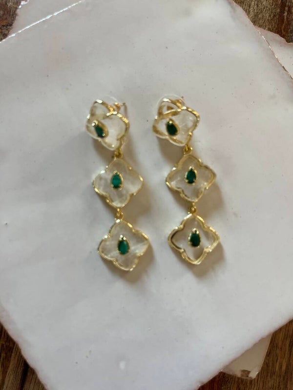 Chaque fleur est ornée d'une pierre naturelle verte.