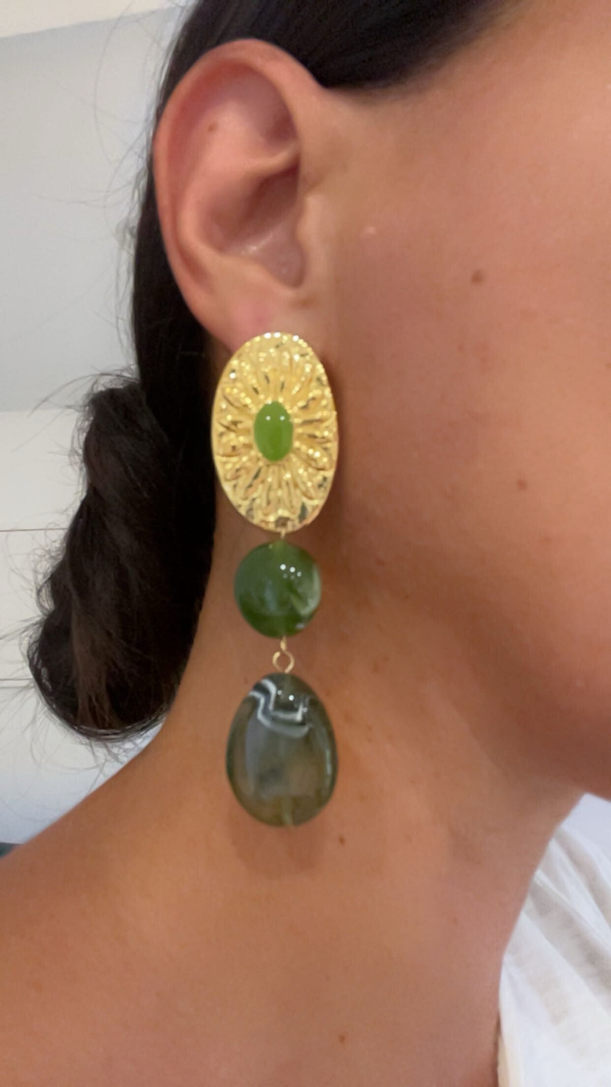 Boucles d'oreilles pierres et dorée en acier inoxydable.